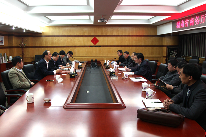 2016年3月2日下午,湖南省商務(wù)廳周越副廳長(cháng)等一行7人蒞臨我司調研、指導,安徽省商務(wù)廳貿發(fā)處孫永彬處長(cháng)陪同。公司總裁莊斌兵、副總裁楊曉剛及運管部參加調研座談。
