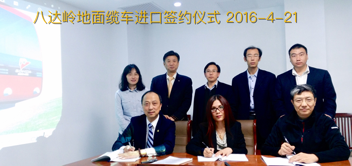 2016年4月21日,我司代理引進(jìn)八達嶺南線(xiàn)索道的采購合同在春意盎然的北京八達嶺長(cháng)城腳下正式簽約,合同金額:近600萬(wàn)瑞士法郎,線(xiàn)路全長(cháng):700m ,單列車(chē)廂:120人,設備將于年內到貨,并在明年5月1日投入運營(yíng)。