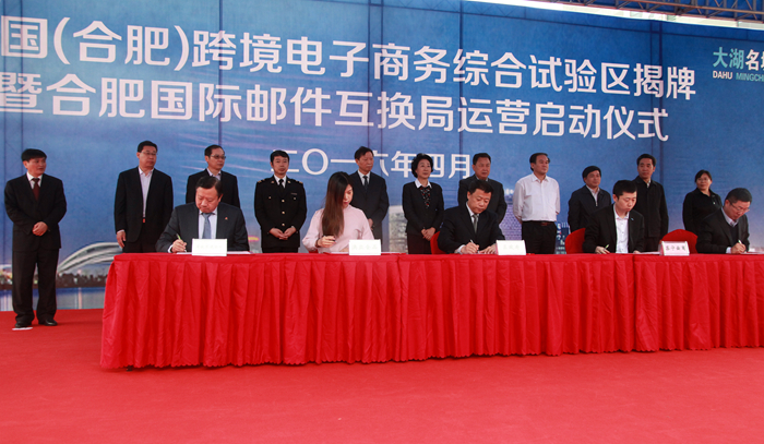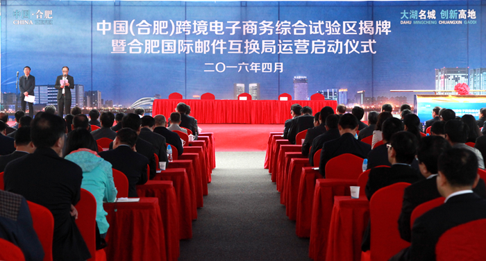 4月26日,中國(合肥)跨境電子商務(wù)綜合試驗區揭牌暨合肥國際郵件互換局正式運營(yíng)啟動(dòng)儀式在蜀山區電子商務(wù)產(chǎn)業(yè)園隆重舉行。省人大常委會(huì )副主任花建慧,安徽出入境檢驗檢疫局局長(cháng)姜宗亮,省商務(wù)廳巡視員張光建,合肥海關(guān)副關(guān)長(cháng)張國強,中央駐皖及省直有關(guān)單位負責人出席啟動(dòng)儀式;市委常委、常務(wù)副市長(cháng)韓冰致辭,并在啟動(dòng)儀式前會(huì )見(jiàn)了相關(guān)跨境電商企業(yè)代表一行。