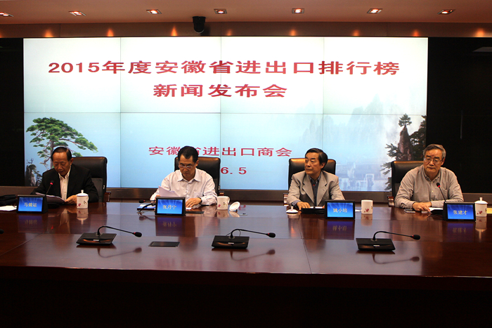 2016年5月12日下午,由安徽省進(jìn)出口商會(huì )組織的,2015年度安徽省進(jìn)出口排行榜新聞發(fā)布會(huì )在安徽省商務(wù)廳六樓會(huì )議室隆重召開(kāi)。安徽省商務(wù)廳副廳長(cháng)張丹寧,安徽省進(jìn)出口商會(huì )會(huì )長(cháng)姚小培、副會(huì )長(cháng)馬錦運、秘書(shū)長(cháng)張建才以及入圍本次排行榜五十強的企業(yè)代表參加了本次新聞發(fā)布會(huì )。公司副總裁楊曉剛代表公司參加發(fā)布會(huì )并領(lǐng)取榮譽(yù)獎牌。