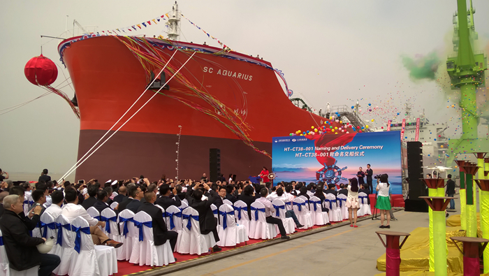該船命名為SC AQUARIUS,總長(cháng)182.7米,型寬32米,型深15.7米,載重噸40900噸,液貨艙30個(gè),可裝載一、二、三類(lèi)化學(xué)品。該船是目前為止第一條在中國建造的最大、可裝載液貨等級最高的雙相不銹鋼化學(xué)品船,建造質(zhì)量和速度優(yōu)于其他3家在建同類(lèi)船型的央企和地方船廠(chǎng)。并且該船的航速、油耗及載重噸等主要性能指標優(yōu)于設計要求,建造品質(zhì)精湛,受到船東中化國際的高度贊揚,也受到了其他國際大船東的青睞。該船的交付是韓通造船升級轉型成功的重要標志。
