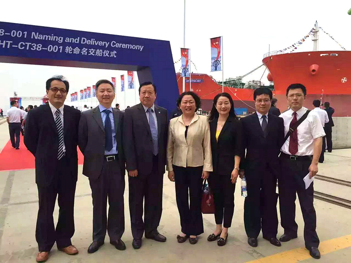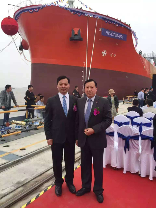 2016年6月6日,程峰董事長(cháng)會(huì )同中國進(jìn)出口銀行安徽分行王新副行長(cháng)、中國出口信用保險公司安徽公司馬衛星總經(jīng)理等一行7人趕赴南通,參加了我司合作伙伴江蘇韓通贏(yíng)吉重工首制38000噸不銹鋼化學(xué)品船(HT-CT38-001)命名及交船慶典。