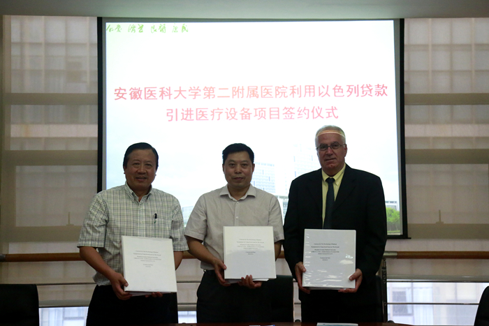 金秋送爽,丹桂飄香。安徽醫科大學(xué)第二附屬醫院利用以色列貸款購置醫療設備項目的合同簽約儀式,于2016年9月23日下午在安徽醫科大學(xué)第二附屬醫院行政樓三樓成功舉行。我司董事長(cháng)程峰、安徽醫科大學(xué)第二附屬醫院院長(cháng)魯超、飛利浦電子(以色列)有限公司高管Mr.Amos Somech出席了簽約儀式。