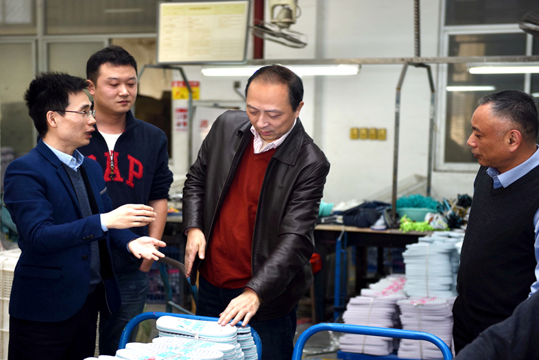會(huì )議期間,莊總還在相關(guān)業(yè)務(wù)部門(mén)陪同下赴福州盛億鞋業(yè)有限公司、福清福盛達塑料制品有限公司、福建省漢和護理用品有限公司進(jìn)行調研。莊總一行參觀(guān)了生產(chǎn)車(chē)間,對產(chǎn)品的生產(chǎn)流程進(jìn)行實(shí)地考察,對產(chǎn)品的檢測、設計等關(guān)鍵環(huán)節進(jìn)行了詳細詢(xún)問(wèn),并與多家企業(yè)領(lǐng)導就下一步的合作進(jìn)行了深入的溝通交流。此次調研訪(fǎng)問(wèn)鞏固了雙方合作關(guān)系,加深了我司對合作企業(yè)的全面了解。