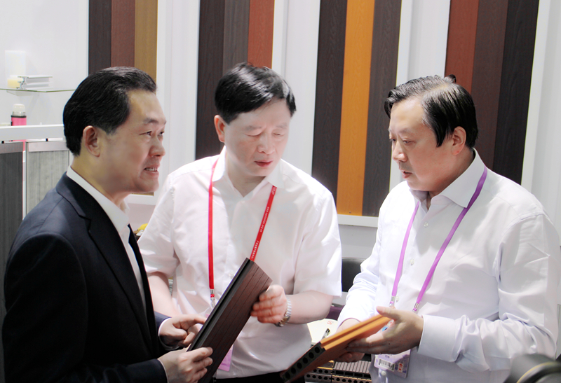 2017年10月17日,張曙光副省長(cháng)在商務(wù)廳和集團領(lǐng)導的陪同下視察了公司廣交會(huì )展位,程峰董事長(cháng)對張副省長(cháng)一行的到來(lái)表示熱烈歡迎,并簡(jiǎn)要匯報了公司前九個(gè)月進(jìn)出口貿易方面取得的成績(jì)以及在本次廣交會(huì )上已經(jīng)收獲的訂單情況。