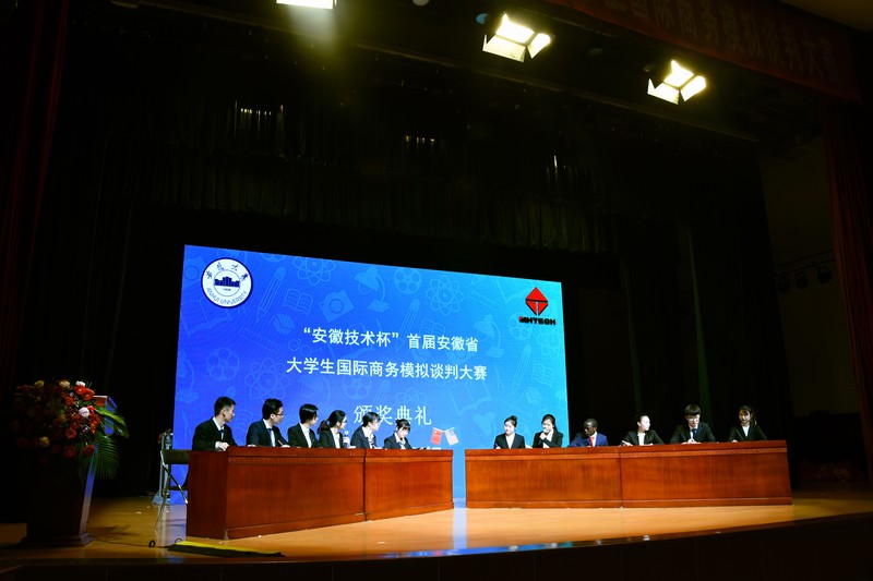 2017年12月10日,由公司贊助的“安徽技術(shù)杯”首屆安徽省大學(xué)生國際商務(wù)模擬談判大賽圓滿(mǎn)落幕。大賽自10月份啟動(dòng),通過(guò)長(cháng)達兩個(gè)多月的校內選拔,來(lái)自安徽大學(xué)、合肥工業(yè)大學(xué)、安徽財經(jīng)大學(xué)等32所高校共計62支參賽隊伍脫穎而出,進(jìn)行最后的激烈角逐。 公司董事長(cháng)程峰、總裁莊斌兵及安徽大學(xué)黨委副書(shū)記胡小松、教務(wù)處處長(cháng)高清維、副處長(cháng)劉德萍、經(jīng)濟學(xué)院院長(cháng)李光龍等領(lǐng)導到場(chǎng)作為嘉賓,與現場(chǎng)600多名觀(guān)眾一同領(lǐng)略了各大高校的學(xué)子風(fēng)采。