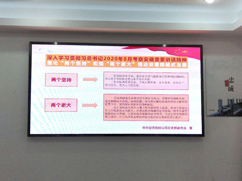 今年9月以來,技術(shù)公司黨委通過微信工作群、公司內(nèi)部電子屏等多種形式,對習(xí)近平總書記考察安徽重要講話精神進(jìn)行了廣泛宣傳,營造了濃厚的學(xué)習(xí)氛圍。