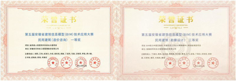 日前,第五屆安徽省建筑信息模型(BIM)技術應用大賽評選結果正式公布,安天利信“樅陽縣人民醫(yī)院外科綜合大樓項目”獲民用建筑(造價咨詢)一等獎、“BIM助力中國互聯(lián)網(wǎng)·阿里巴巴江蘇云計算數(shù)據(jù)中心南通金屬園項目”獲民用建筑(勘察設計)三等獎。