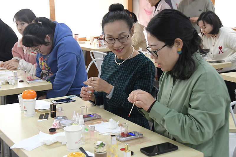 口紅DIY活動的現(xiàn)場充滿驚喜和贊嘆,參與的女員工在專業(yè)老師的指導(dǎo)下配比原料、攪拌、加熱、倒模、脫?!蠹乙唤z不茍地雕琢自己的“作品”,女性特有的細(xì)致在這里體現(xiàn)的淋漓盡致。當(dāng)一支支香氣迷人的口紅拿在手上,抹到唇上,大家臉上都散發(fā)著光芒。