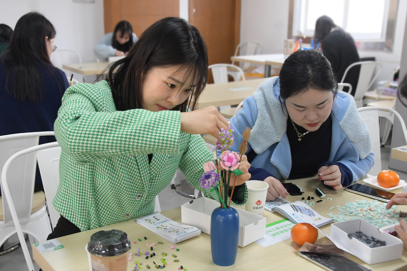 參與手工拼裝活動的女員工們,各自領(lǐng)取心儀的拼裝款式,大家三兩聚在一起,對著幾百個的小顆粒,對照說明書有條不紊行動起來。這既是一個放松的游戲環(huán)節(jié),也是一個相互交流的過程?!拔以诩医?jīng)常陪孩子拼搭積木,第一次為自己完成一個作品,滿滿的成就感!”在制作過程中,大家紛紛表達(dá)了參與感受。