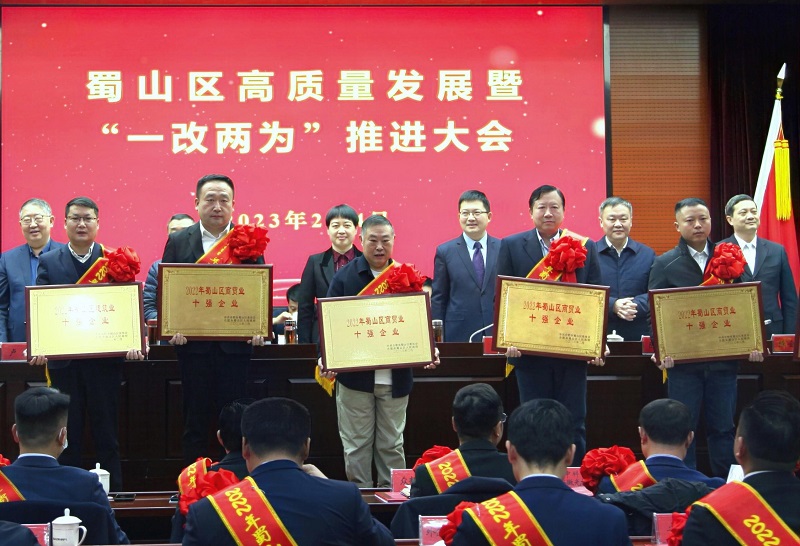 2月4日上午,合肥市蜀山區人民政府召開(kāi)蜀山區高質(zhì)量發(fā)展暨“一改兩為”推進(jìn)大會(huì )。公司憑借優(yōu)異的成績(jì),為蜀山區經(jīng)濟高質(zhì)量發(fā)展作出重大貢獻,再度榮獲“2022年蜀山區商貿業(yè)十強企業(yè)”稱(chēng)號。