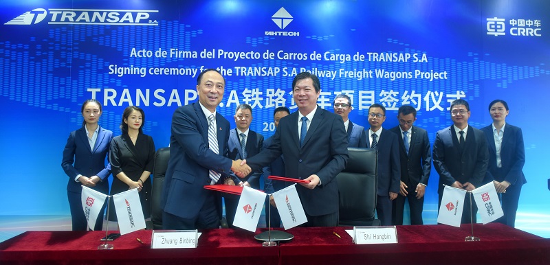 7月19日上午,我司與中車(chē)長(cháng)江集團聯(lián)合出口智利TRANSAP公司180輛原木平車(chē)項目合同云簽約儀式在武漢長(cháng)江集團總部舉行。公司黨委副書(shū)記、總裁莊斌兵一行前往武漢,與中車(chē)長(cháng)江集團總經(jīng)理史洪斌及智利TRANSAP公司董事長(cháng)阿爾貝托·皮拉佐利共同見(jiàn)證項目簽約。